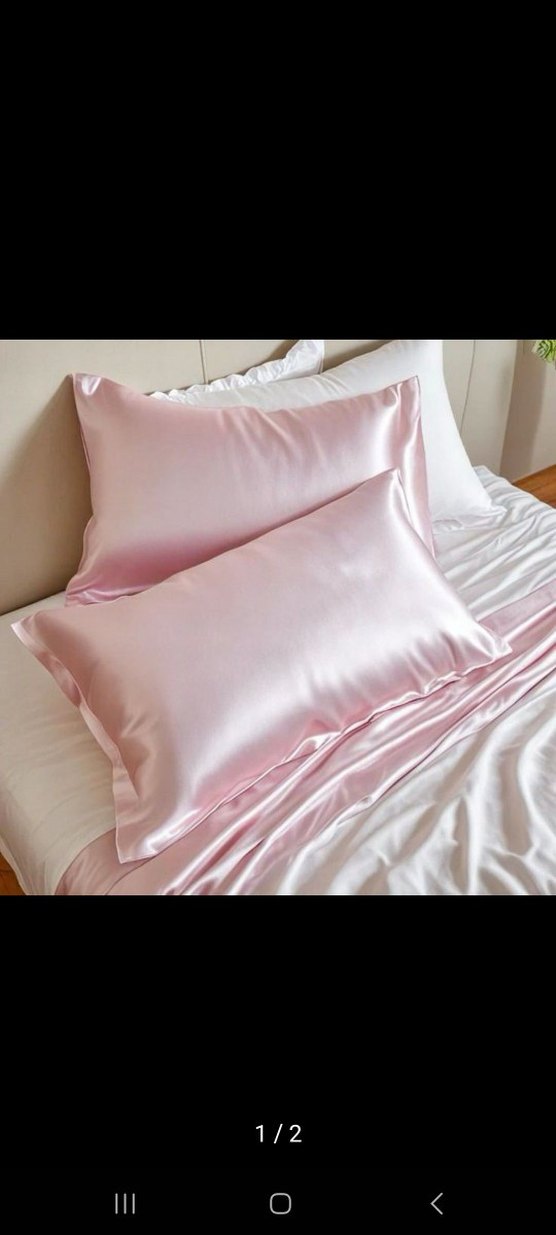 acik mor ve beyaz renk mevcut düz saten ipeksi dokuda yastık kılıfları, yatak takımlarınıza yumuşak ve şık bir dokunuş sağlar.