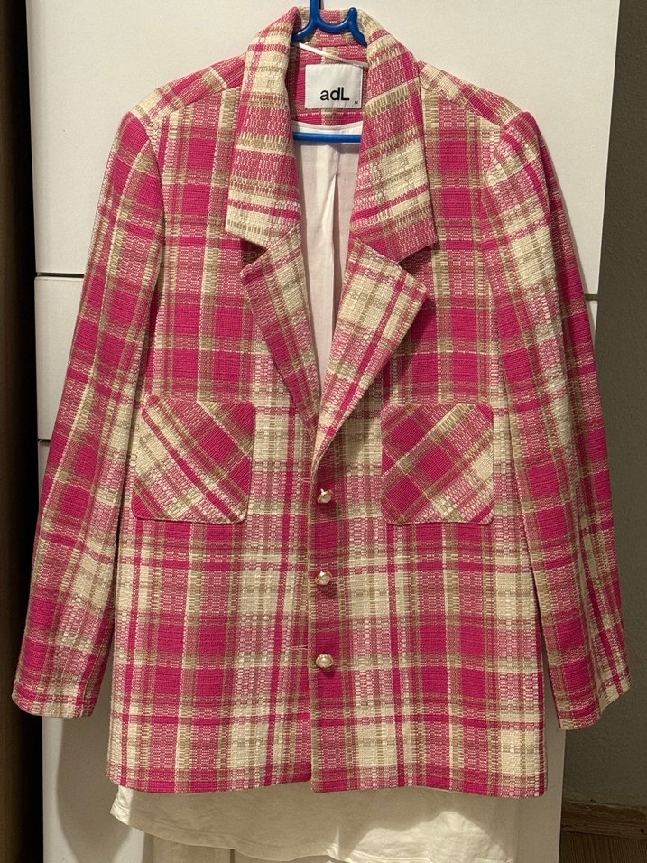 Pembe Ekose Desenli Kadın Blazer Ceket