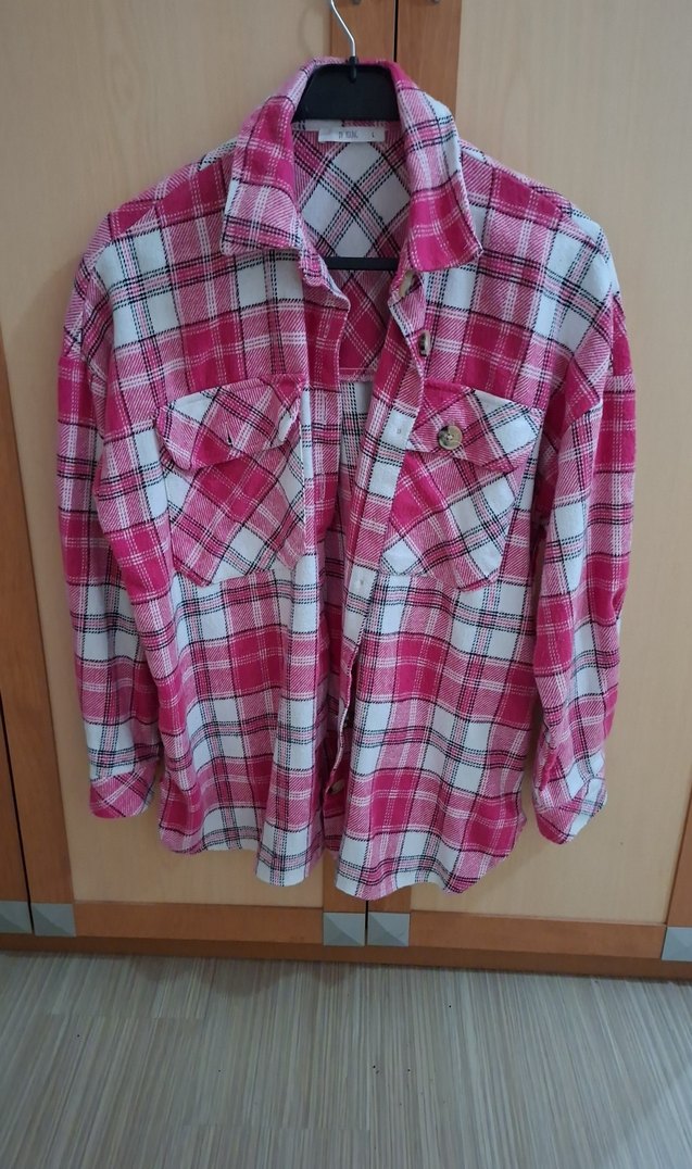 Uzun kollu, düğmeli, notalı yaka pembe ekose desenli kadın polar gömlek. Rahat kesim, ön ve göğüs cepli, sıcak tutan kumaştan üretilmiştir.