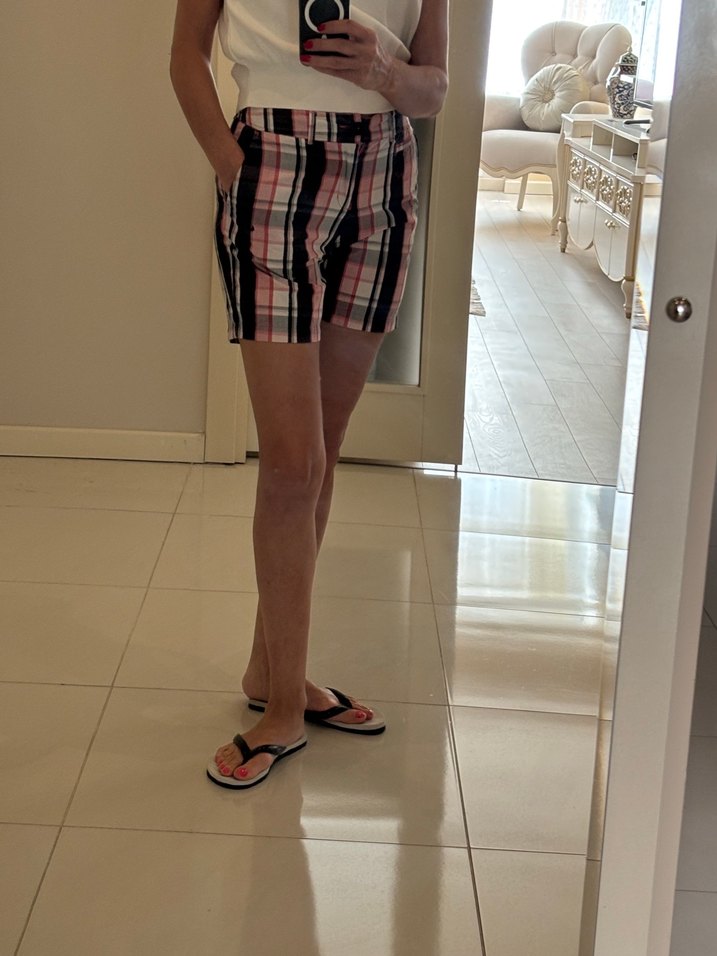Pembe Ekose Kemerli Mini Bermuda Şort