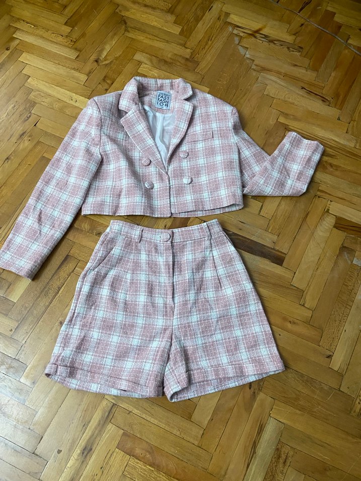 Pamuk kumaştan üretilmiş, düğmeli, ekose desenli pembe mini kadın takımı. Uzun kollu, kısa boylu ve regular fit kesime sahip, günlük sokak stiline uygun.kışlık takım butik ürünüdür