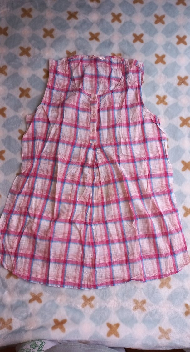 Pembe pastel tonlarında, kolsuz, straplez yakalı, düğmeli, midi uzunlukta, bol kesim hamile ve emzirme Bluz