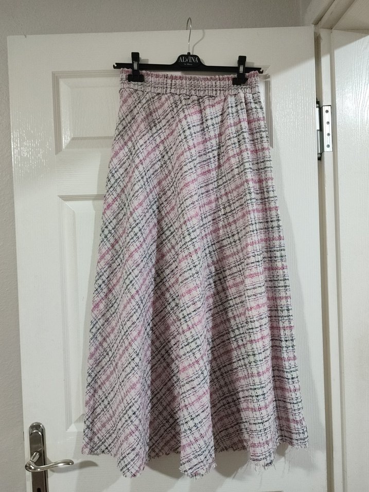 Pembe tonlarında pastel renkli, uzun kadın eteği. Sentetik kumaştan yapılmış, günlük kullanıma uygun bohem ve retro tarzda bir etek. kişiye özel dikiyorum lastikli hali 70 cm esnek hali 110 cm boy 93-94 cm e kadar ayarlanabilir