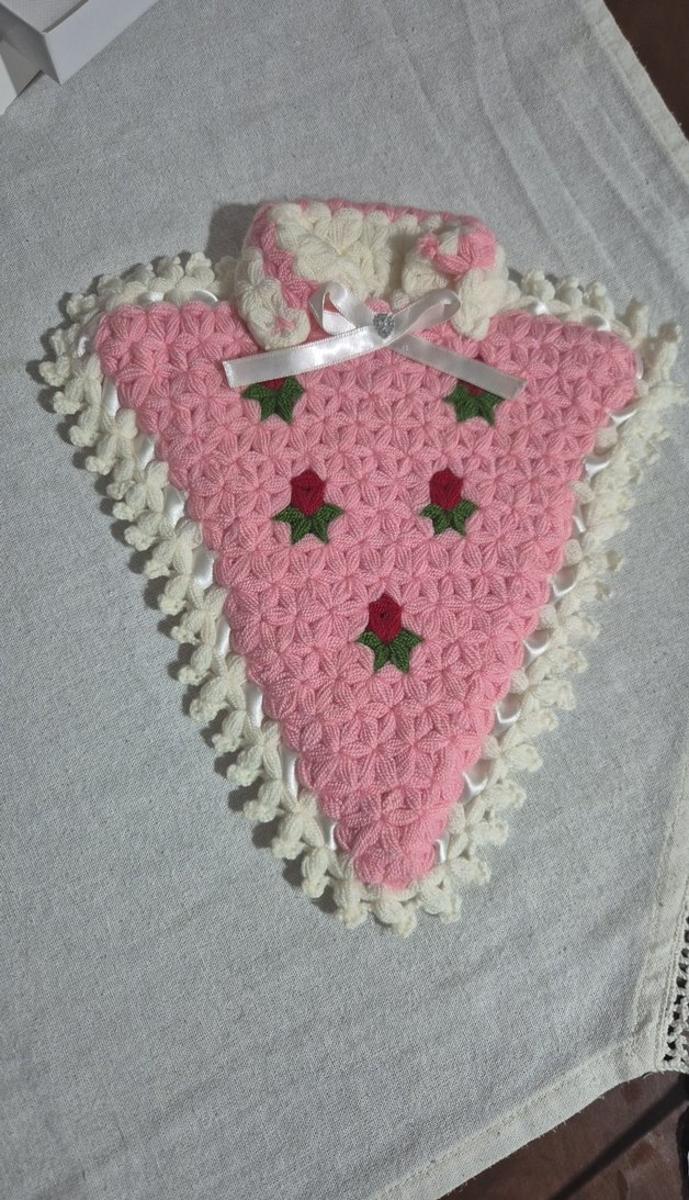Pastel pembe renkli, el örgüsü çiçek desenli banyo Lifi