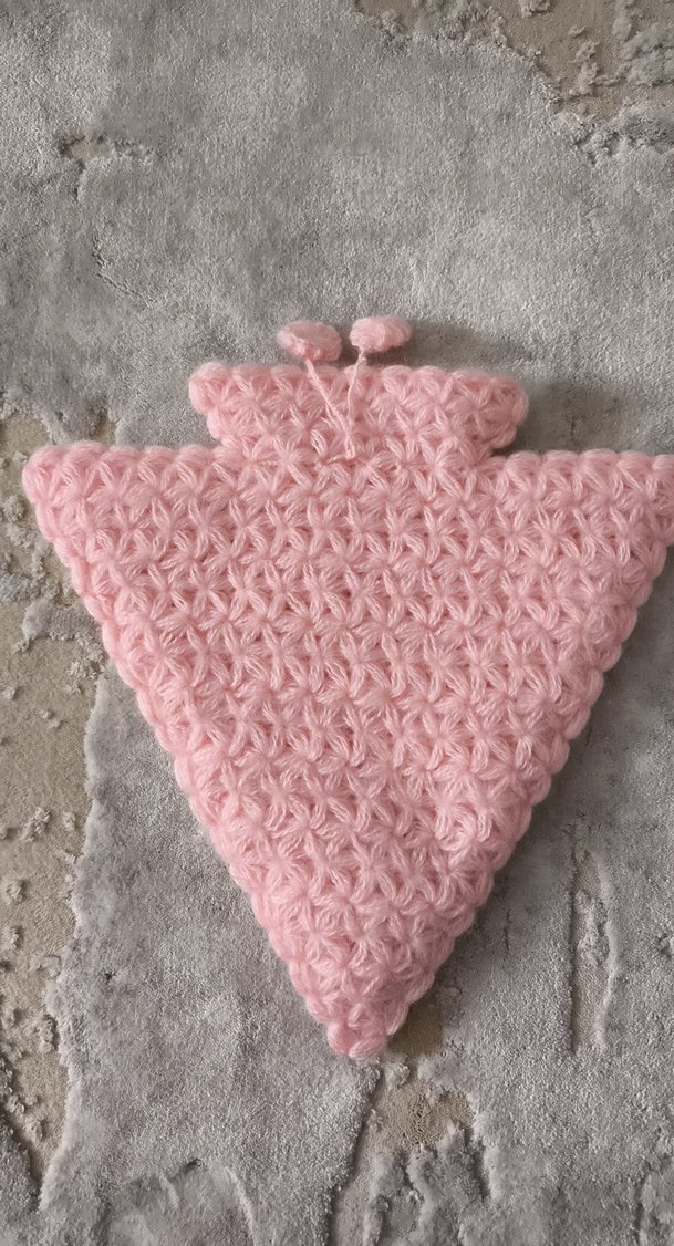 Yumuşak, pastel pembe el örgüsü, dokulu desenli banyo süngeri, nazik temizlik sağlar.