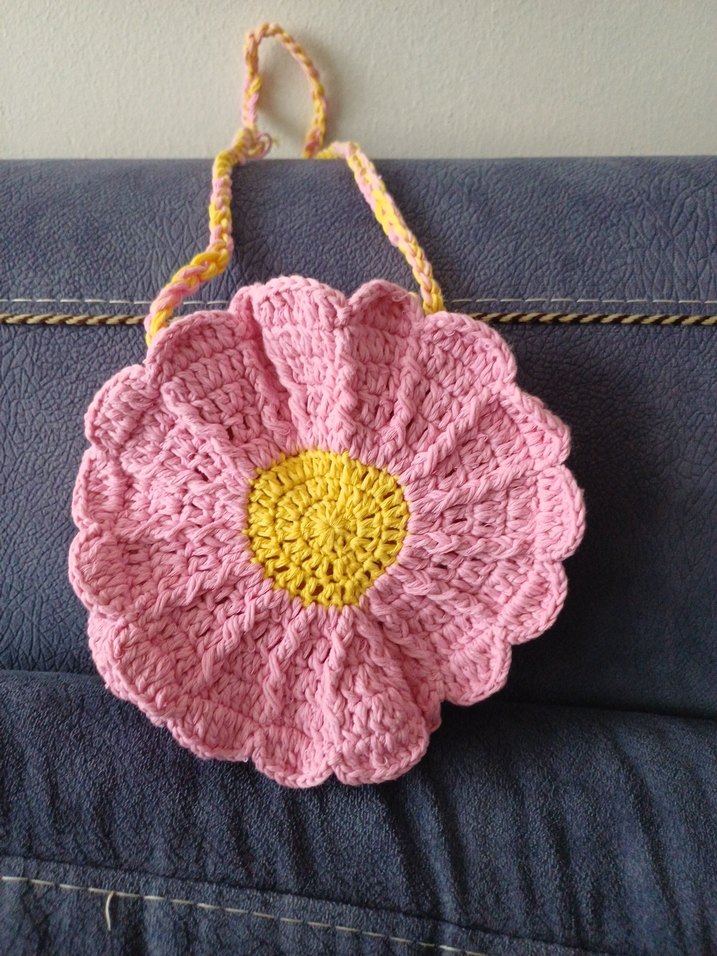 Pembe, el örgüsü çocuk çanta istenilen renkte örülür