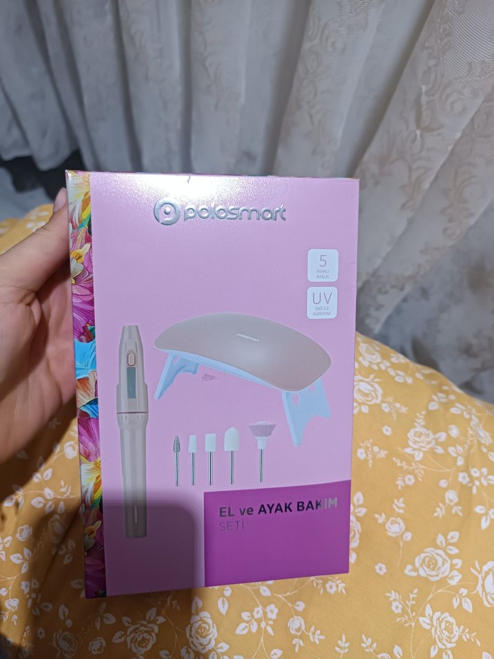 Pembe renkte el ve ayak bakımı için UV lambalı ve 5 farklı başlıklı set. Detaylı bakım için uygundur. Bir kere kullanıldı