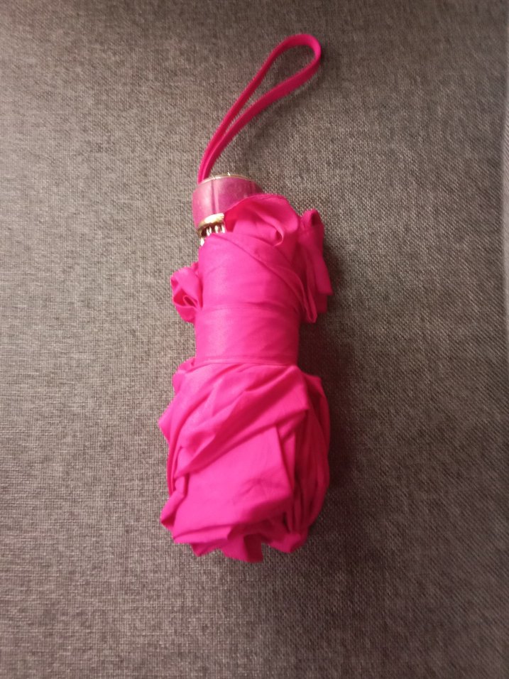 Elastik kayışlı pembe kadın şemsiye, taşıma kolaylığı sağlar. Renkli ve avant-garde tarzı tamamlar. ☂️