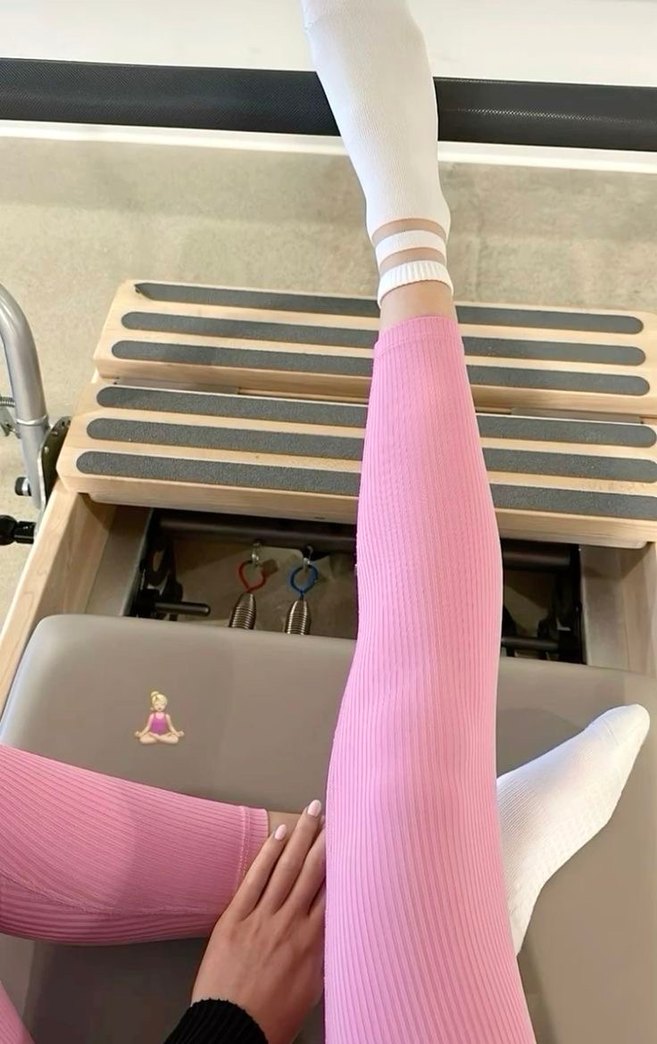 Pembe elastik bel detaylı, düz ve midi boyda spor tayt. Rahat ve şık normcore tarzı için uygundur.