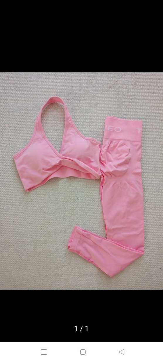 Yumuşak sentetik kumaştan, elastik beli olan pembe, normal boy, sportif ve sokak tarzı için uygun tayt.