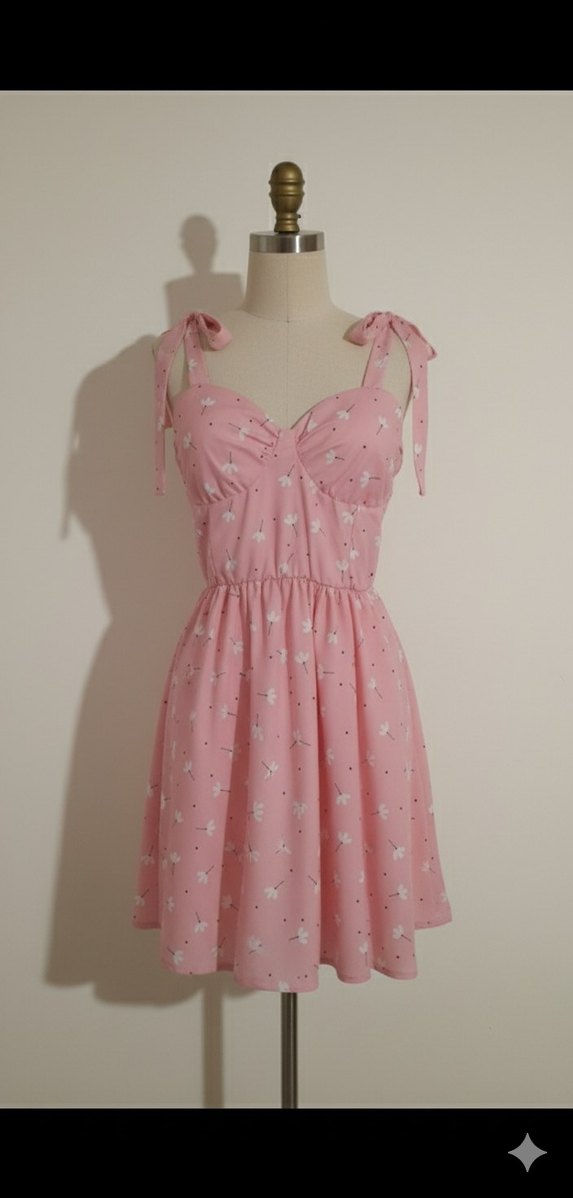 Toz pembe renginde çiçekli bir elbise. Denemeden almıştım göğüs kısmı bana olmadı büyük geldi genel olarak kaba durdu bu yüzden satmak istedim. Göğüs kısmında hazır kalıp pedler bulunmakta, iç çamaşırı kullanmadan giyebilirsiniz.