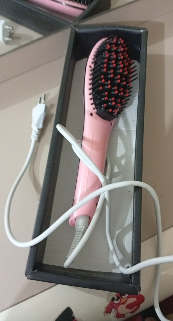 Pembe renkli saç düzleştirici tarak, kullanımı kolay kablo ve saçları nazikçe düzleştiren kıllara sahiptir. ♀️