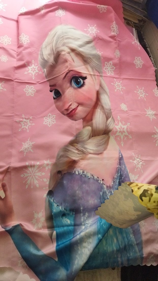 Pastel pembe renkte, Elsa figürlü ve kar tanesi desenli büyük baskıya sahip yatak örtüsü. ❄️ Ölçüleri 1.40*2.55