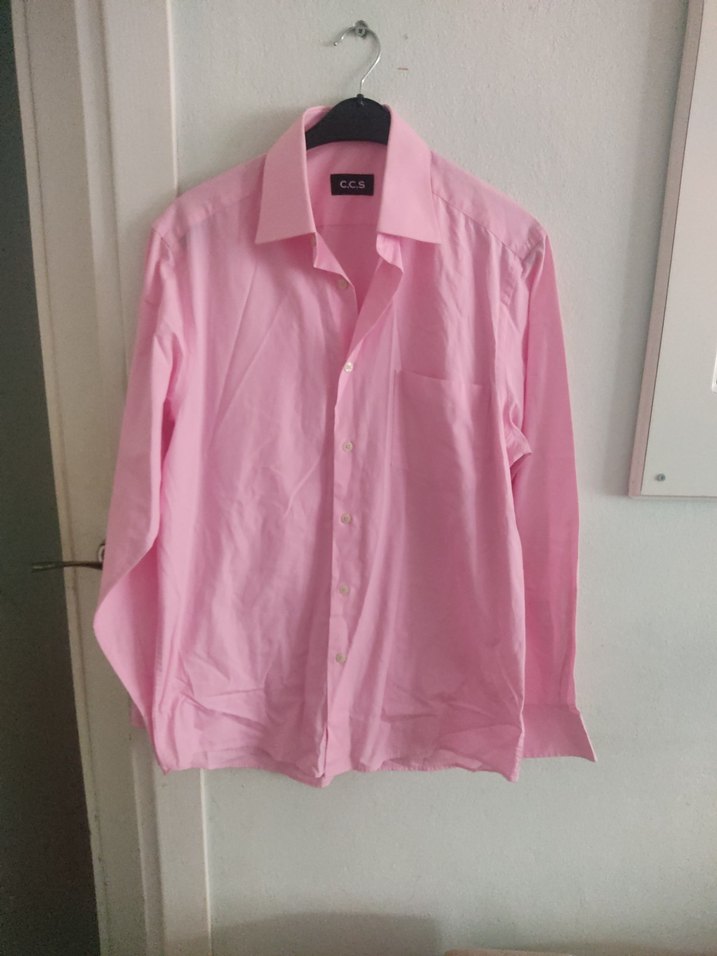 Bu erkek gömlek, pastel pembe renkte ve nefes alabilen kumaştan yapılmıştır. Normal kesim, uzun kollu ve kesik yaka detaylarına sahiptir. Ofis ve sokak stiline uygundur.