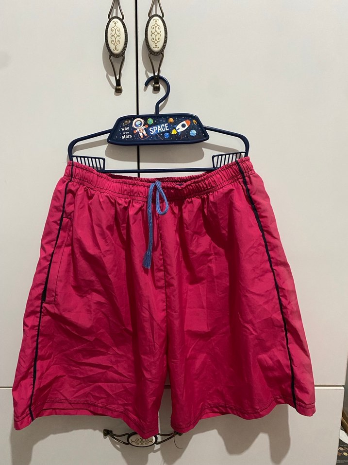 Pembe renkte, fermuarlı detaylı bol kesim erkek/kadın yüzücü şort. Normal midi boyda, bağcıklı bel yapısıyla dış mekan kullanıma uygundur.