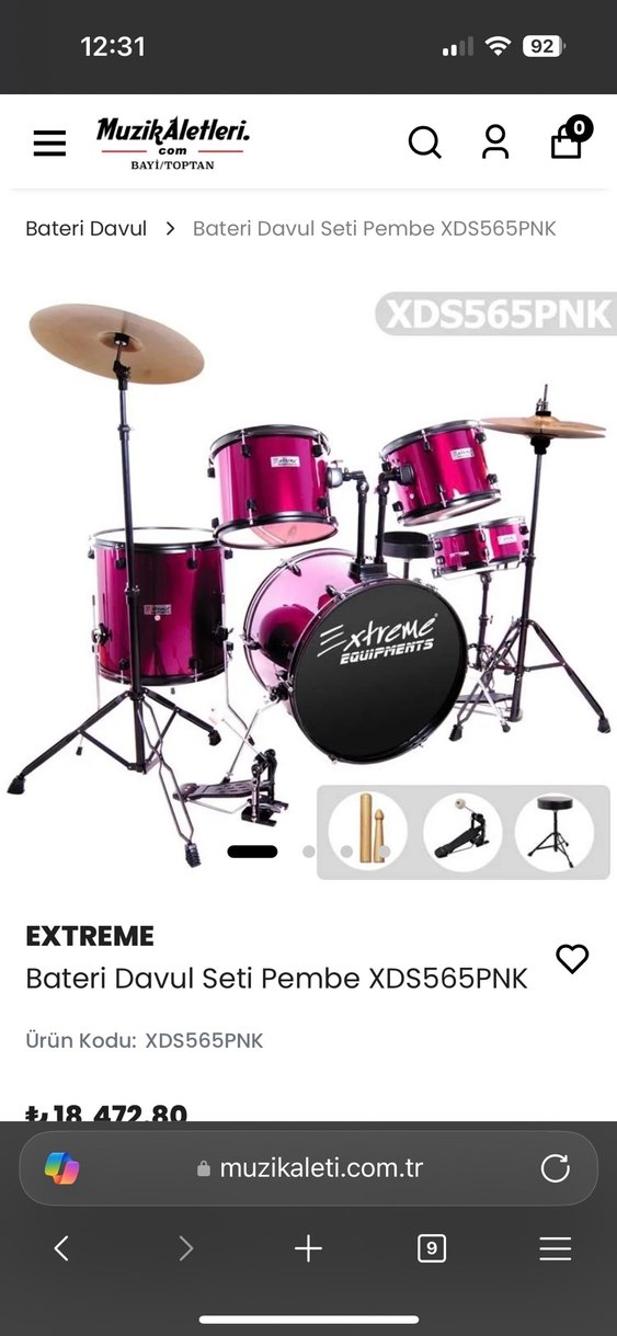 Renkli pembe bateri davul seti, çeşitli davullar ve ziller ile birlikte gelir. Extreme markası, XDS565PNK modeli. Paket İçeriği: 1 adet 12 inç Davul 1 adet 13 inç Trampet 1 adet 14 inç Davul 1 adet 16 inç Alto 1 adet 22 inç Büyük Davul 1 çift hihat zilller 1 adet Crash Zil 1 çift baget 1 adet zil sehpası 1 adet HiHat (kontra) zil sehpası Üzerindeki baba sayısı : 8 Renk : Pembe Bu yeni model davul takımında kullanılan tüm stand, ayak, metal parça ve aksamların et kalınlıkları artırılmıştır. Ayrıca zil sehpası T model olarak yenilenmiştir. Şimdi sipariş verirseniz 1 adet Davulcu Koltuğu hediye ediyoruz Orta seviye ve profesyoneller için idealdir.