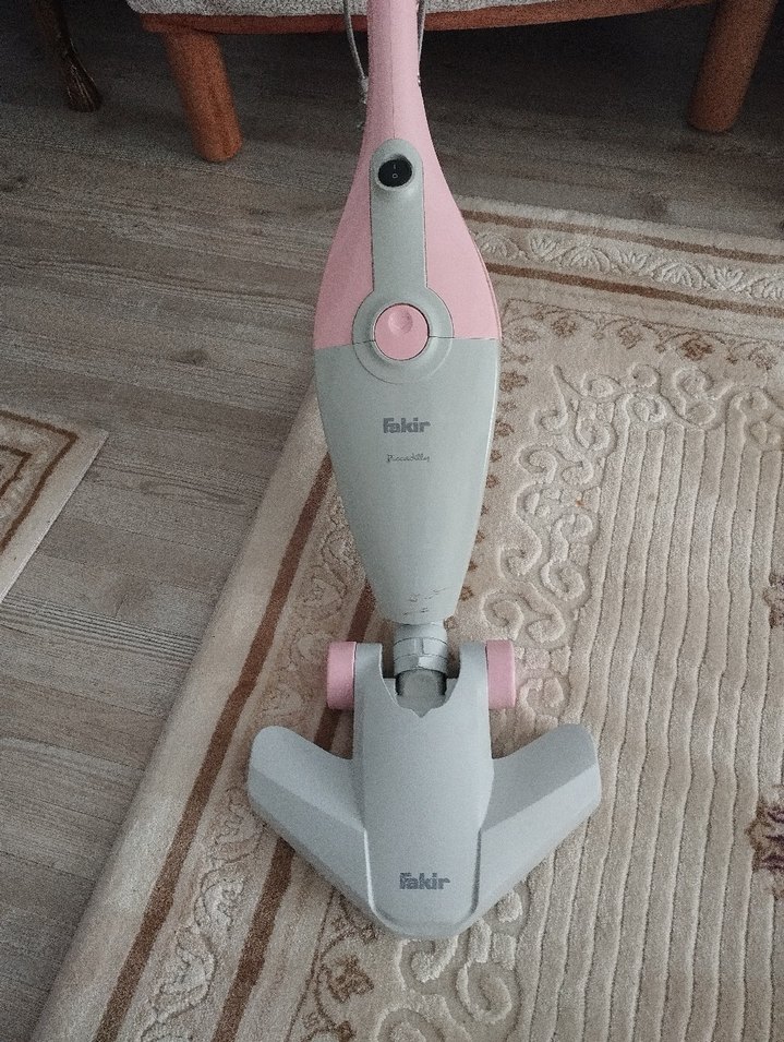 Pastel pembe renkli Faldir elektrikli süpürge, hafif tasarıma ve kolay kontrollere sahiptir. Farklı zeminler için uygundur ve tekerlekleri sayesinde rahat hareket eder.