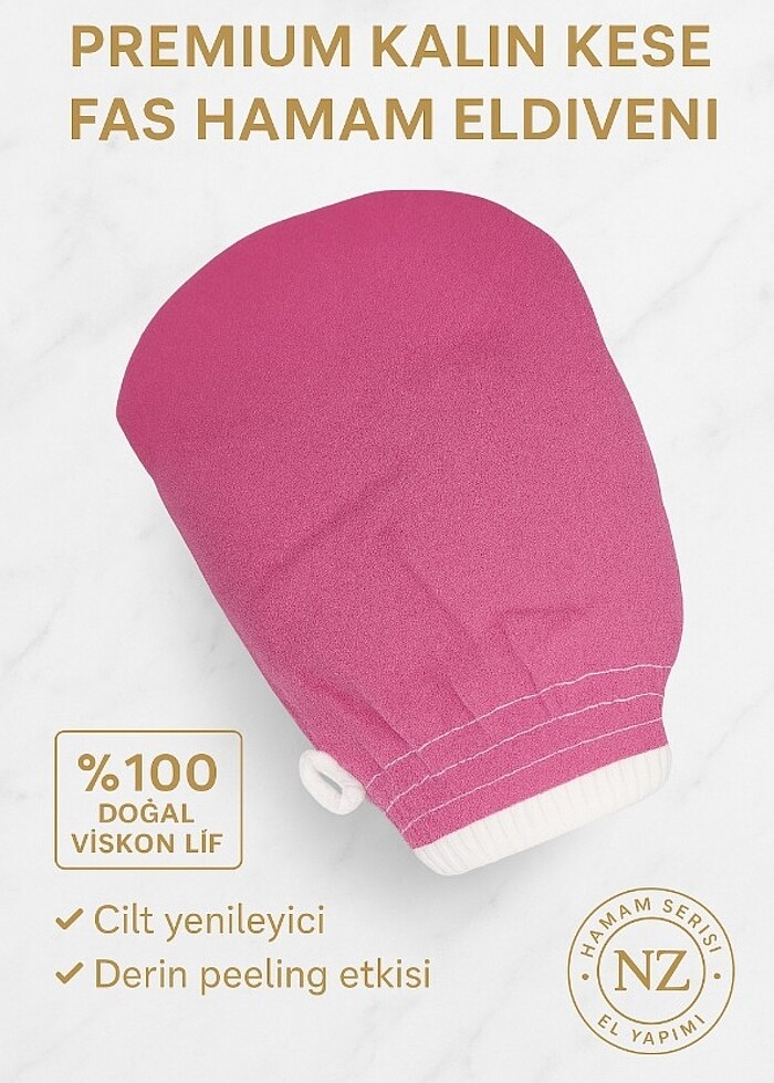 Pembe Fas kalın hamam /Spa / Sauna kesesi -Peeling kesesi - 1. Kalite