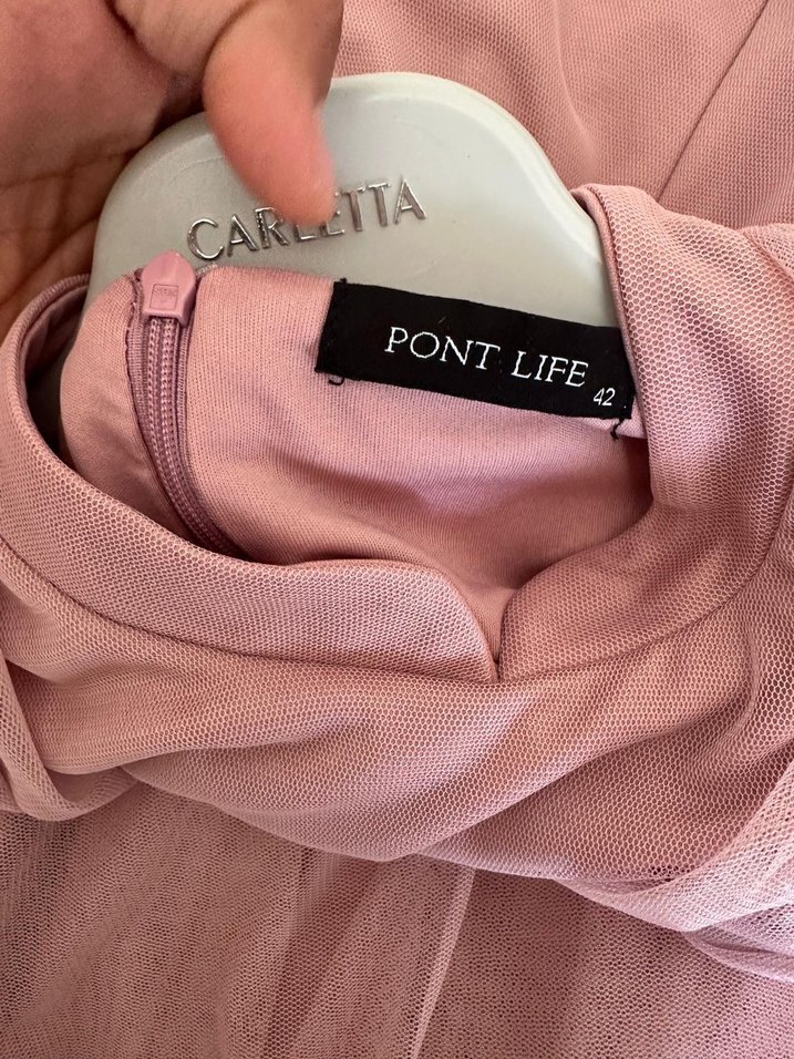 Pembe, uzun kollu, bisiklet yaka, fermuarlı ve baskılı Pont Life markasına ait, yumuşak sentetik kumaştan.