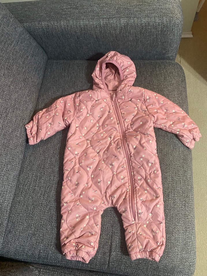 Pastel pembe renkte, fermuarlı ve kapüşonlu bebek astronot mont. Yumuşak dolgulu, manşetleri lastikli ve yakası kesimli. Görseldeki gibi, bir kusuru yok. 12-18 ay