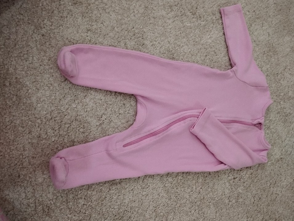 Pastel pembe, yuvarlak yakalı ve fermuarlı bebek kız tulumu, yumuşak kumaştan üretilmiştir. ❄️
