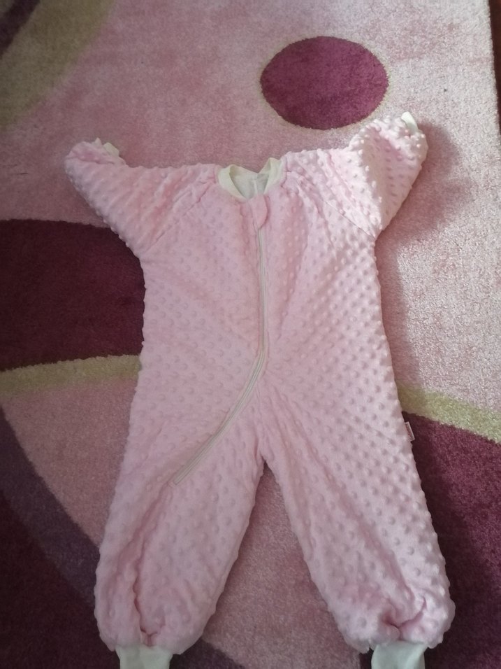 Yumuşak dokulu, pastel pembe fermuarlı bebek kız tulumu. Askısız yaka ve sıcak tutan tasarım içerir. ❄️