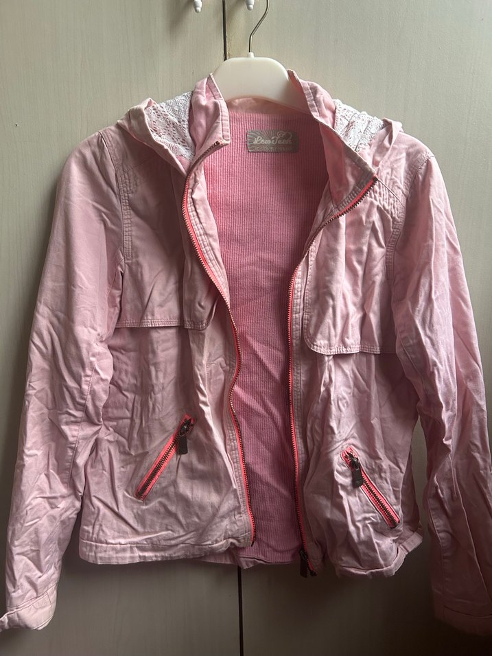 Pastel pembe renkte, uzun kollu, fermuarlı ve fitted kesim kadın ceket. Sentetik kumaştan, günlük kullanım ve sokak stili için uygun. 12.13 yaş
