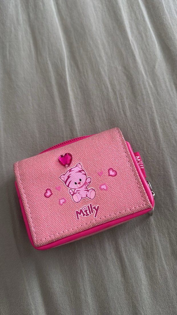 Yumuşak, konforlu kumaştan yapılmış, fermuarlı, pembe cüzdanı. Üzerinde Milly yazısı ve sevimli baskı bulunur. Casual kullanıma uygundur.