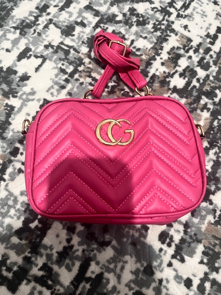Bu şık pembe kadın çantası, renkli baskılı desene ve fermuarlı kapanışa sahiptir. Sentetik kumaştan üretilmiş, günlük sokak stili ve kullanım için uygundur. Paris esintili, kapitone deseni ve altın çift G logosu bulunur.