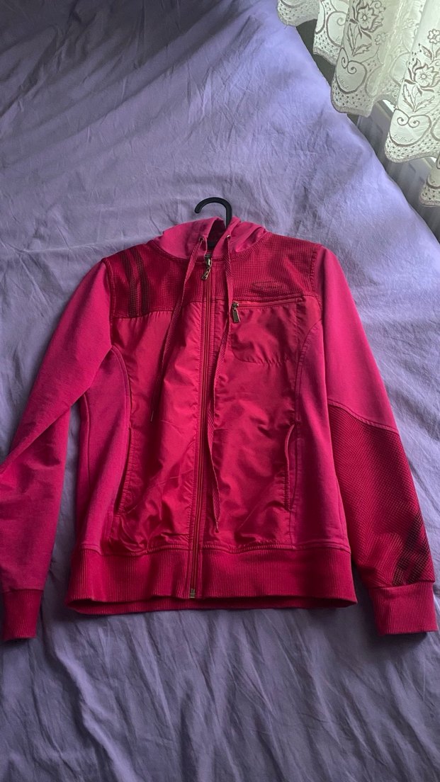 pembe renkte, fermuarlı ceket. Uzun kollu günlük dış mekan kullanımı için uygun. Sıfır ayarında hiç bir defosu yok