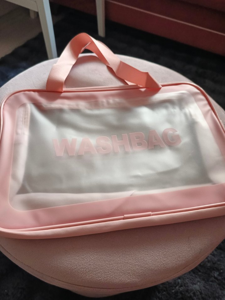 Pembe plastikten yapılmış, fermuarlı ve baskılı desenli kadın makyaj çantasıdır. Günlük kullanım için uygundur ve athleisure sokak tarzını yansıtır.
