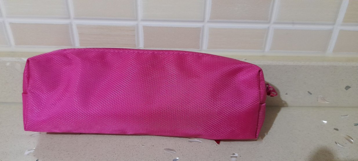 Kadınlar için pembe, fermuarlı ve desen içermeyen makyaj çantası. Minimalist ve çağdaş tasarımıyla günlük kullanıma uygundur. kalemlik kalem kutu