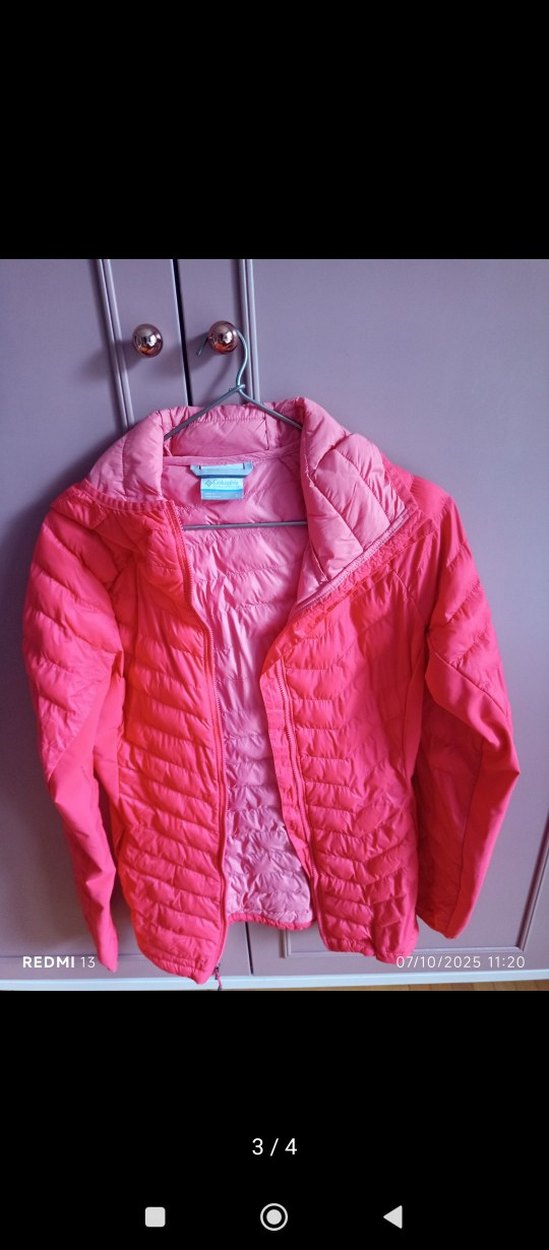 Pembe renkli, fermuarlı ve yakalı uzun kollu kadın mont. Orta uzunlukta, rahat ve sıcak tutan kumaştan yapılmıştır. Trend sokak stili için uygundur.