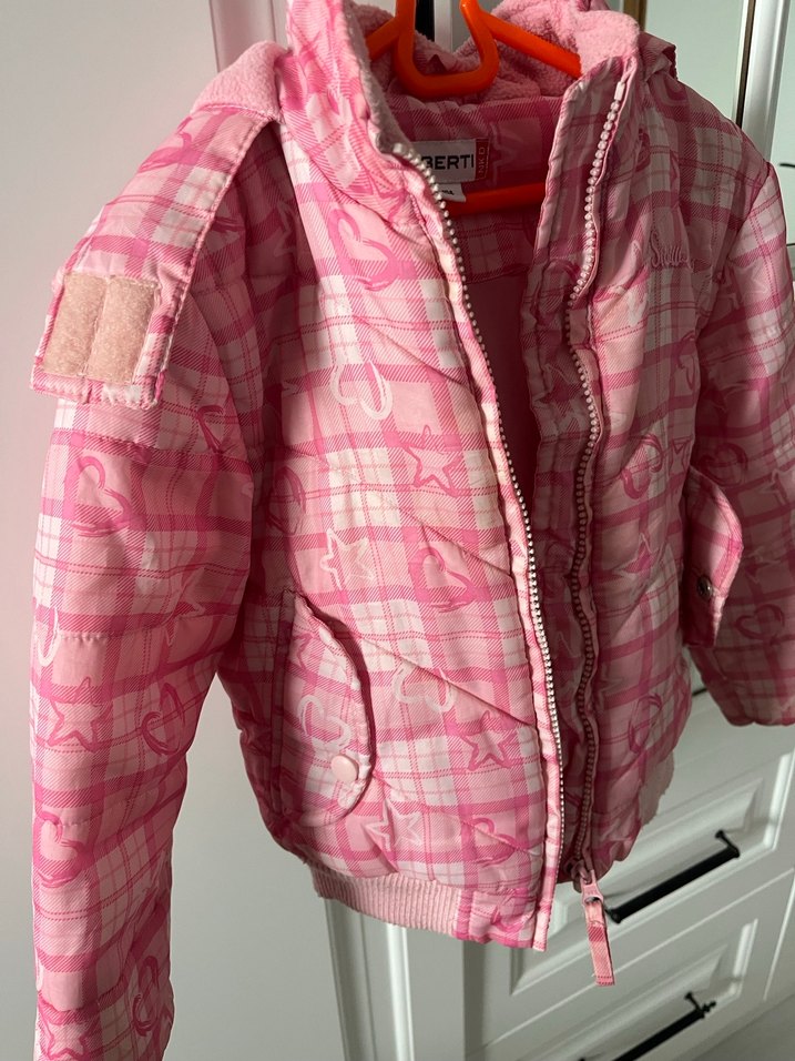 Pembe, fitted kız çocuk mont, çıtçıtlı ve notched lapel yakaya sahiptir. Yumuşak ve sıcak kumaştan, parlak görünümlü sokak stili için uygundur.