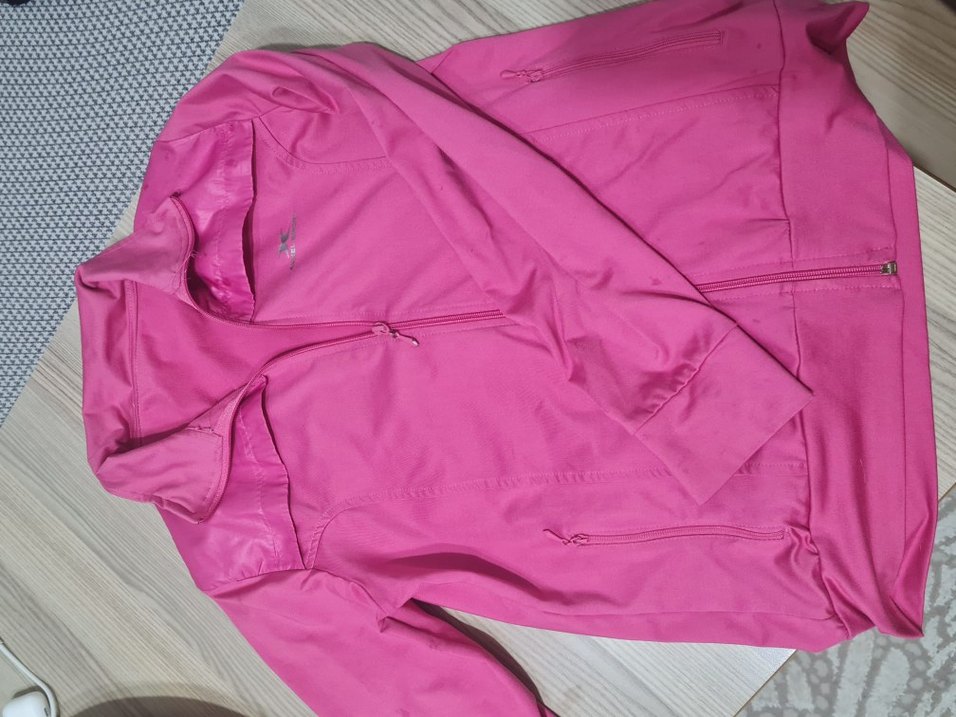 Pembe, fermuarlı ve yüksek yakalı, uzun kollu, fermuarlı. Parlak yüzeyiyle günlük sokak stili için uygun. Ölçüleri fotolarda mevcuttur inceleyebilirsiniz. Temizdir.