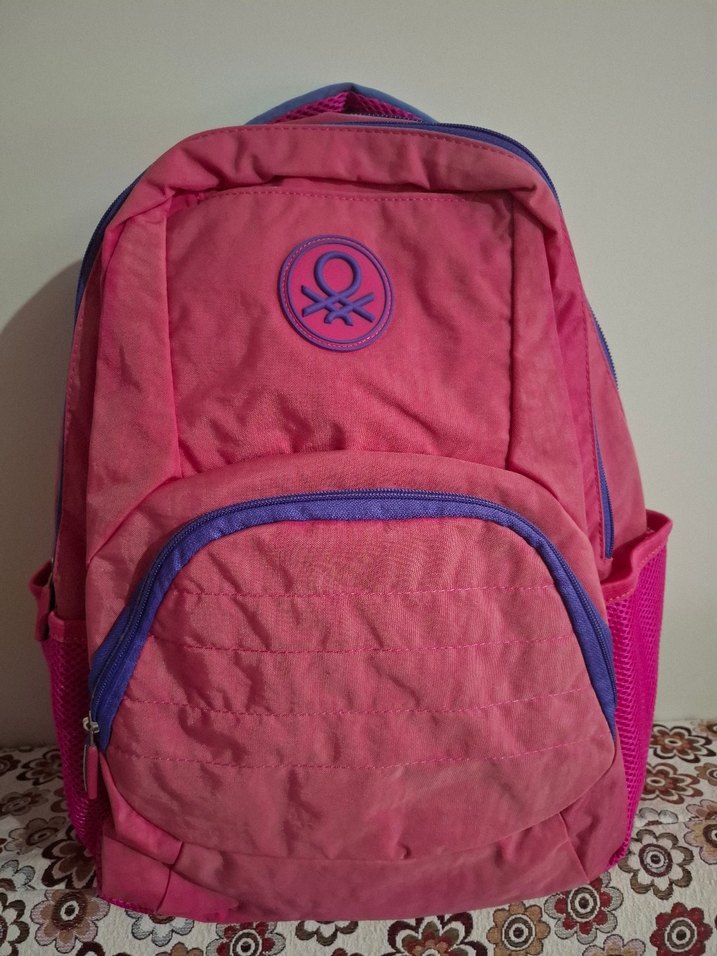 Pembe renkli, fermuarlı bölmelere sahip okul çantası. Günlük kullanıma uygun. Sıfır üründür.