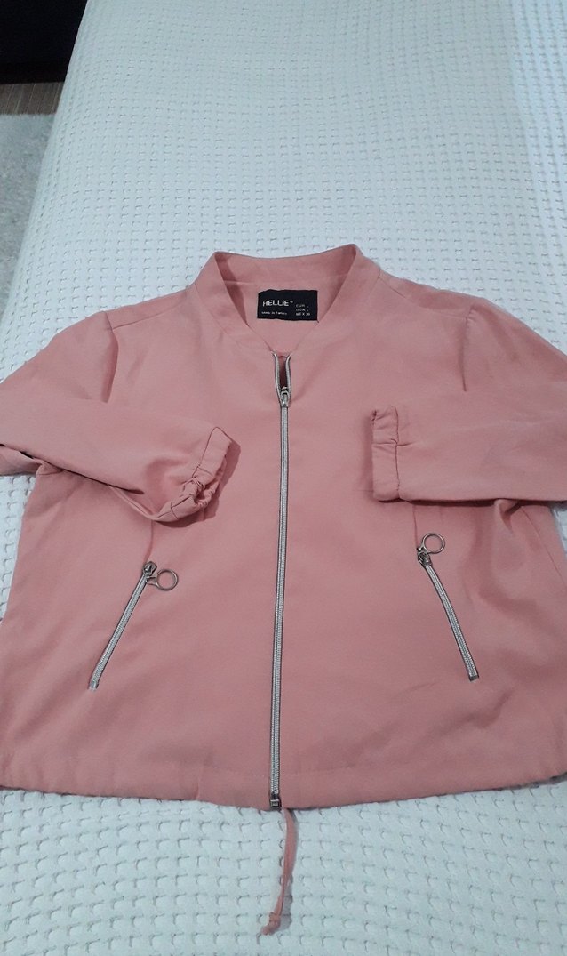Pastel pembe renkli, fermuarlı cepleri olan, bol kesim ve uzun kollu kadın ceketi. Sentetik kumaştan yapılmıştır, günlük kullanıma uygundur. yavru agzi harika bi parca sayili kullanildi