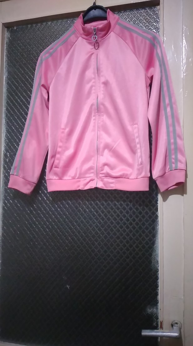 Pembe parlak renkli, fermuarlı ve uzun kollu Yüksek yakalı ve sokak tarzına uygun, spor görünümlü, yumuşak sentetik kumaştan yapılmıştır. sorunu yok