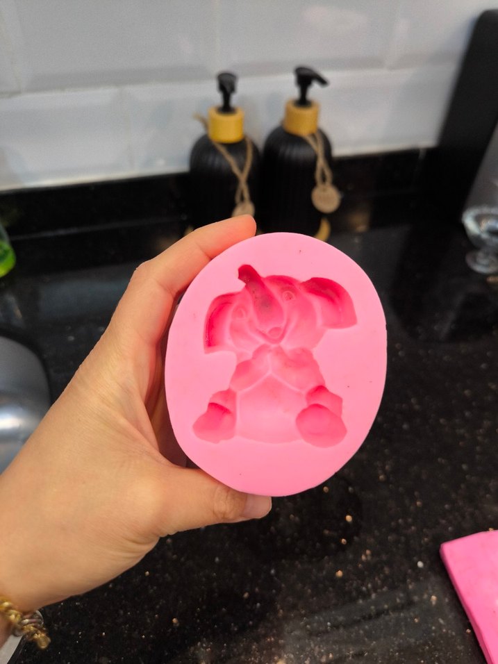 Yumuşak pastel pembe renkte, oturan fil şeklinde detaylı silikon kalıbı. #silikonkalıp silikon kalıp