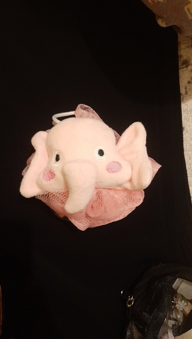 Nakışlı gözleri ve yanakları olan yumuşak pastel pembe fil şeklinde peluş oyuncak . Hıc kullanilmadi