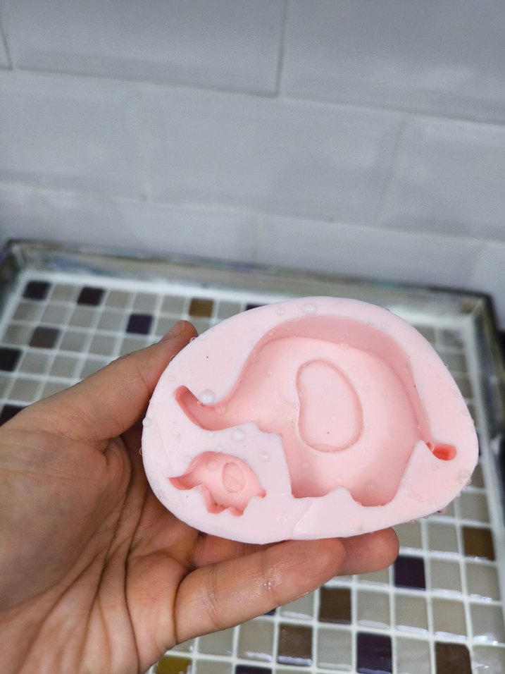 Pastel pembe renkte, fil figürlü silikon kalıp, kek ve pasta süslemeleri için uygundur. Bebek fil anne fil olarak panolarda ve magnetlerde çok tatlı duruyor.