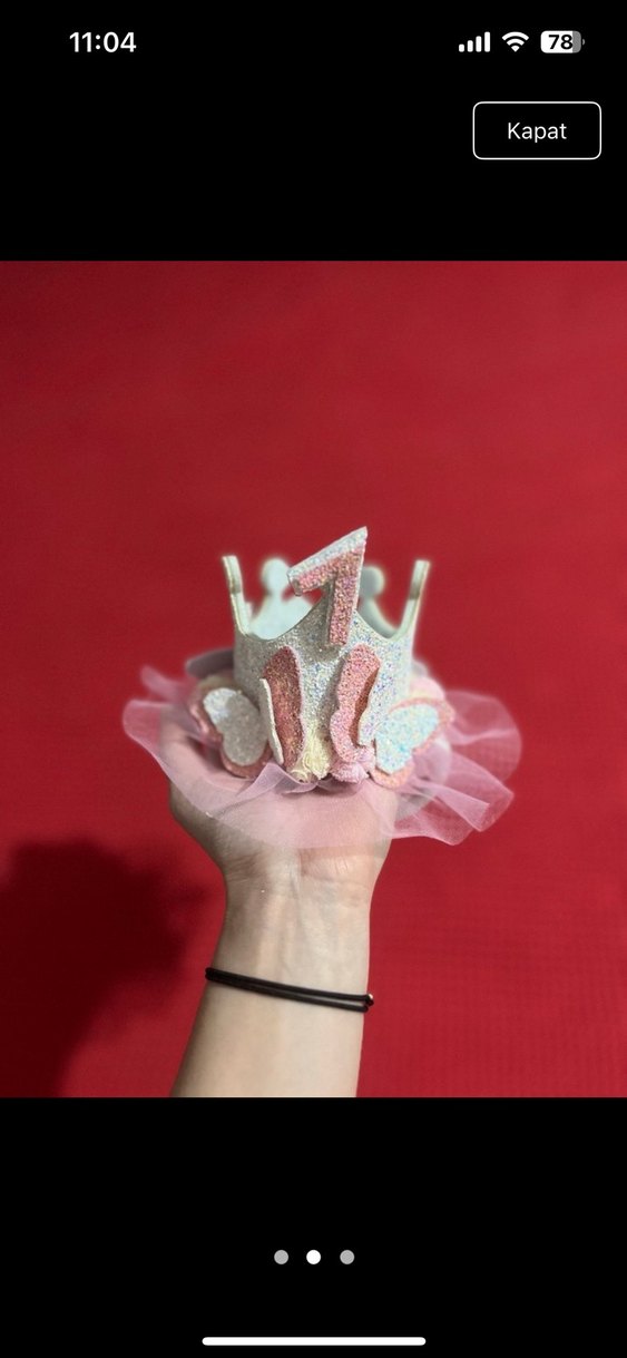 Pembe renkli bebek tacı Tokası ve içinde çıtçıtı mevcut standart boyut Her bebeğe uygundur lastik esnektir.