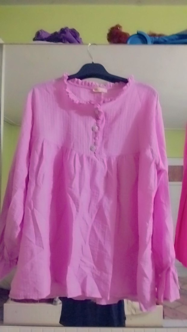 Pembe Fırfırlı Keten Bluz 40 Beden