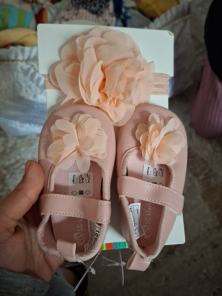 Pastel pembe renkli, baskılı ve fırfır detaylı kız çocuk babetleri. Kauçuk malzemeden üretilmiştir, rahat ve şık bir tasarıma sahiptir.