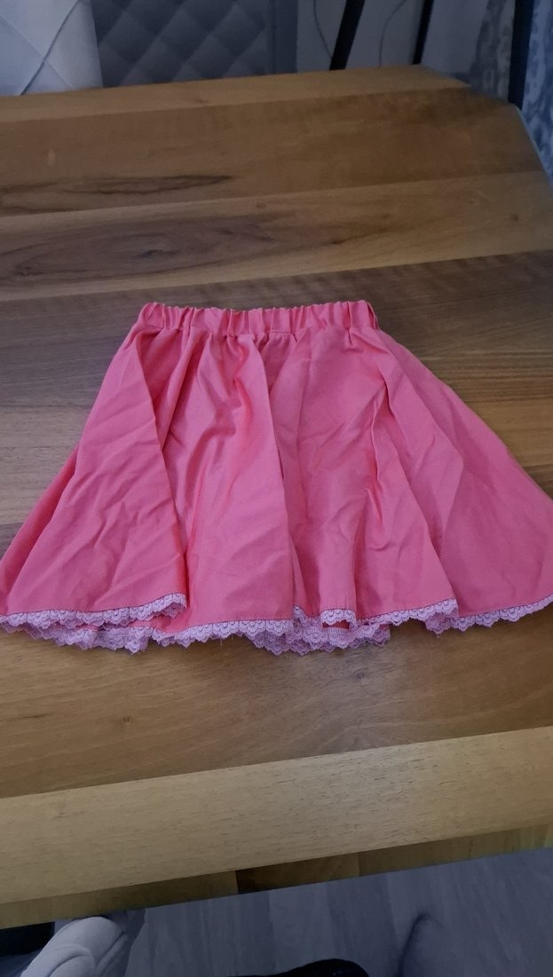 Pembe pastel renkte, bol kesim kız çocuk eteği fırfırlı kenarları ve yumuşak sentetik kumaşıyla rahatlık sağlar. Ozel dikim , eteğin boyu 35 cm dir