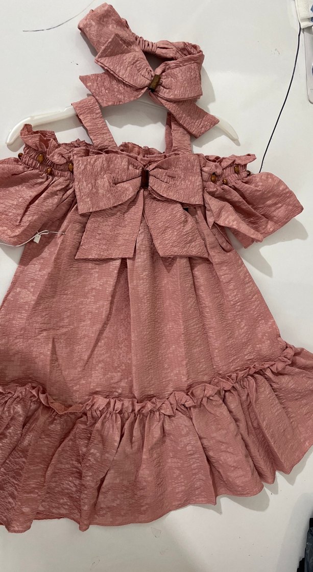 Pembe Fırfırlı Kız Çocuk Keten Elbise