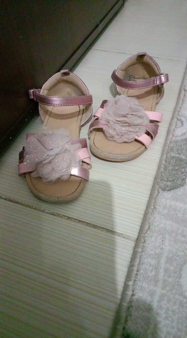 Pembe renkli, yumuşak bantlarda fırfır detayı bulunan, kauçuk malzemeden yapılmış kız çocuk sandaletleri. Pastel tonlarda, desensiz ve bohem tarzda.