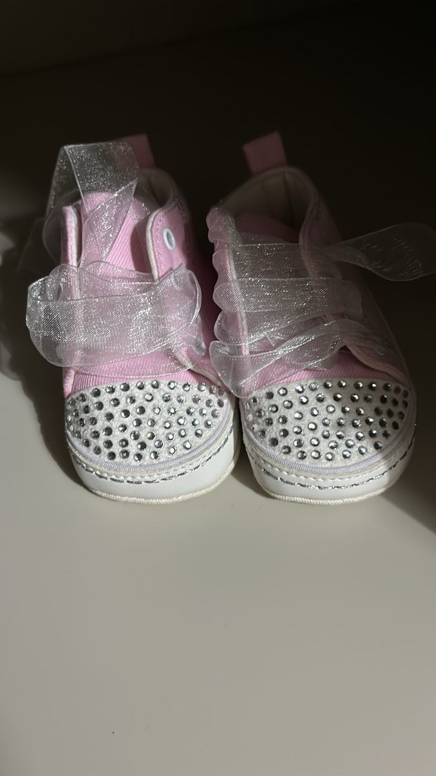 Pembe renkli, fırfırlı ve taş detaylı lastik burunlu kız çocuk spor ayakkabısı, günlük sokak stili için uygun.