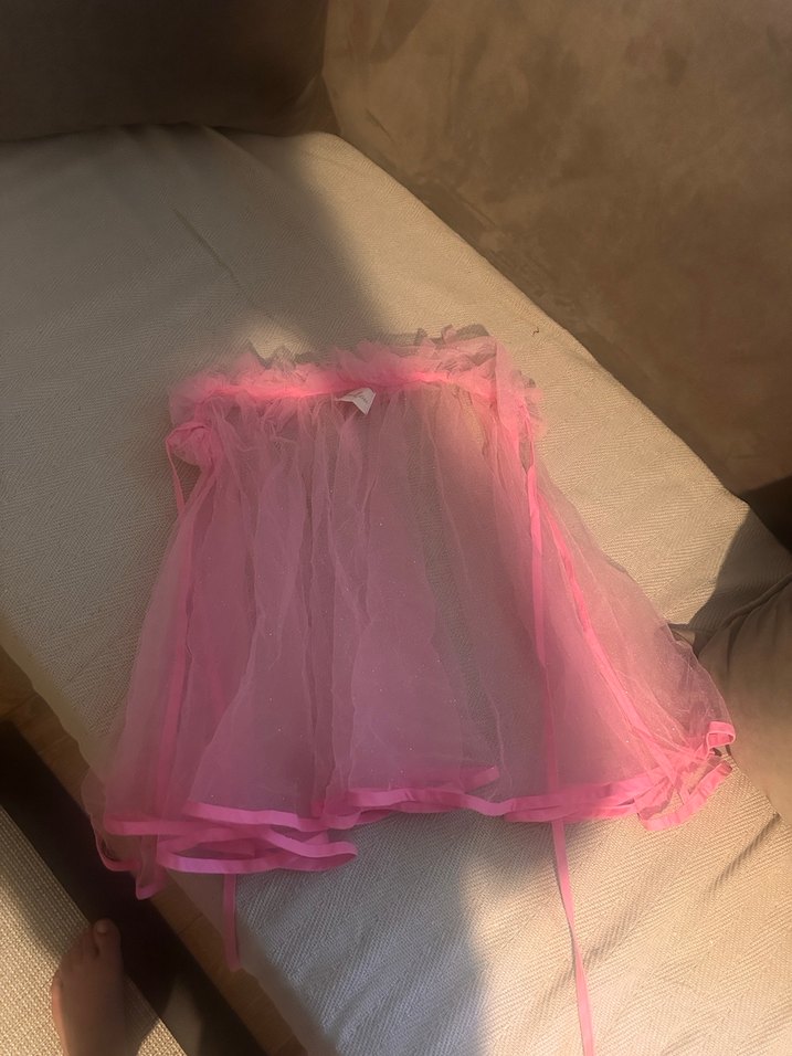Pastel pembe renkte, yumuşak sentetik kumaştan, fırfır detaylı ve vücuda oturan gotik tarzda pelerin 1-5 yaş