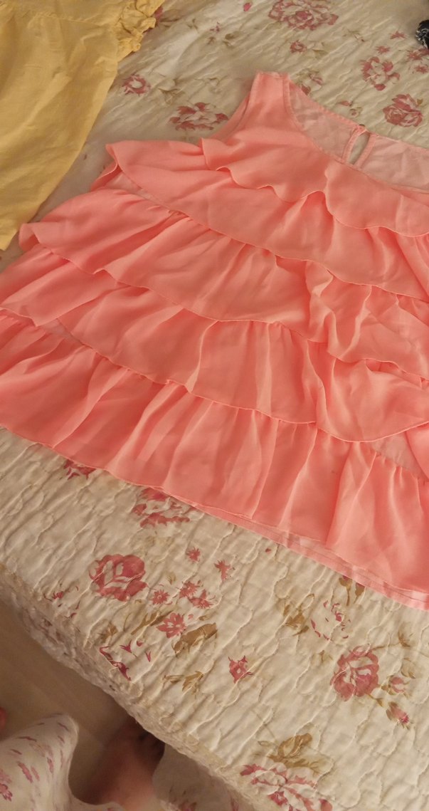 Yumuşak keten kumaştan, loose fit, pastel pembe renkli, fırfırlı midi hamile eteği. Bohem tarzda, parti için uygun.